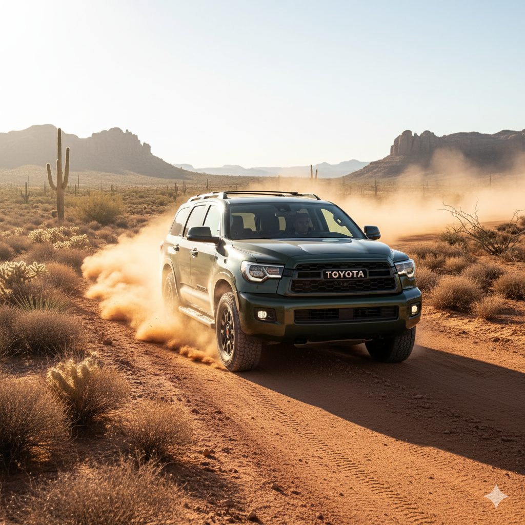 The new Sequoia, right? They finally redesigned it. And it’s… a tank. But a modern tank. The third row is kind of a bummer though, because it doesn’t fold flat into the floor—it’s on rails, so you lose some cargo flexibility. Which is a weird choice. But it’s a Toyota! It’ll probably run forever. Price is up there now, probably mid-$60,000s to start.