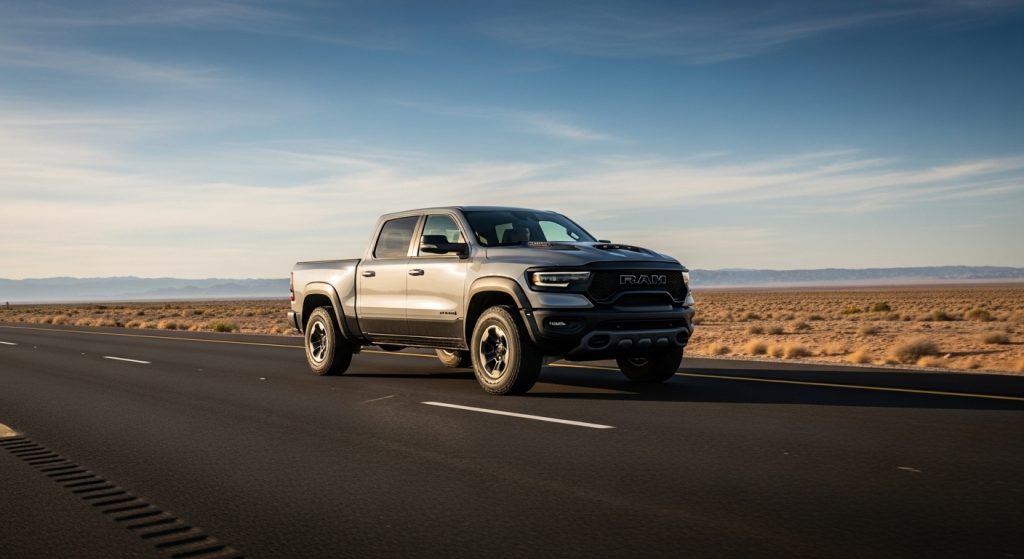 Ram TRX trucks heavy presence, supercharged growl pulls eyes, but dealer tags stay put making it feel stuck. Own it and haul feels effortless, repeating speed rushes, though parking turns tricky. Uncertain on value holding. Feels reflective, almost.