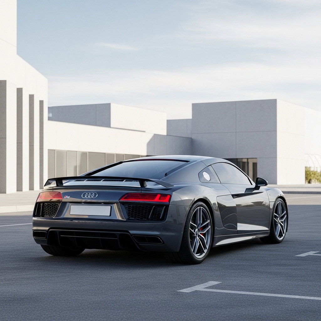R8 V10 growls park, lights flash elite. Surprisingly common insides, owning feels accessable almost. Revs high repeats, yet parts plain. Contradicts pure supercar. Sits there.