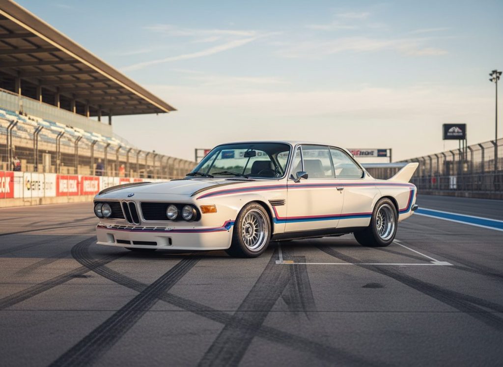 3.0 CSL lightweight coupe flares wild Batmobile name. Straights fast curves stick. Aluminum doors save weight. Owners track it bumps firm. Icon looks alone kinda. Handling pure no help.