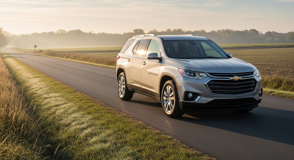 The Traverse fits kids and gear sliding doors helping out. You own it for practicality though engine knocks enter mind faintly. Recall attention grows on seats or airbags lately. Driving feels steady but uncertainty softens when passing big rigs. It repeats as family friendly with those backdrop worries.