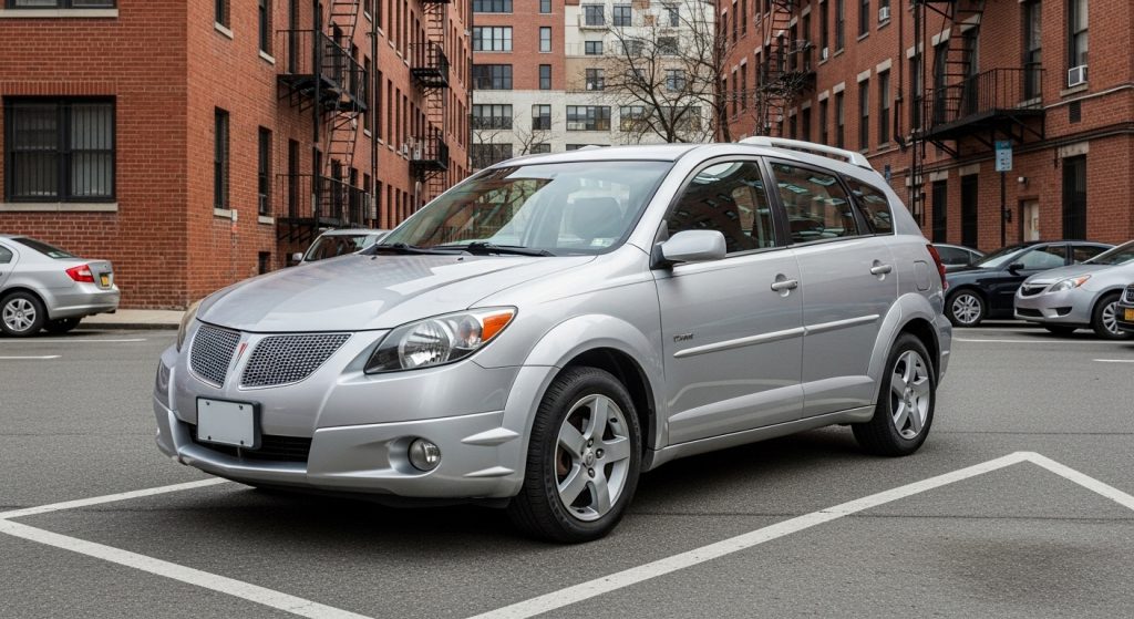 Pontiac Vibe wagon hops around town nimble, shared guts reliable. Owning means easy life, flips up seats. Contradicts plain looks with pep. Softens highway. Unnecessary mileage thought.