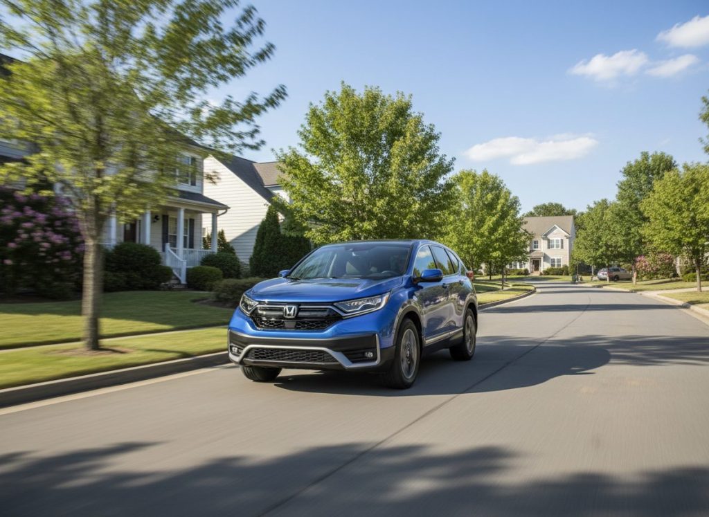CR-V Hybrid roomy AWD real snow bites. Two motors instant go quiet cabin. Fuel 40s class top. Seats comfy tech snappy. Owners pile miles no fuss. Practical everywhere yeah.