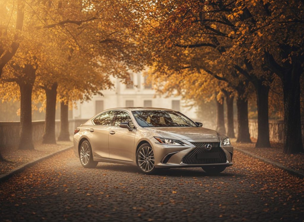 ES Hybrid sedan luxury glide silent smooth. Seats cream front back space. Fuel 44 quiet highway king. Reliability Lexus best wood trim nice. Long trips no fatigue I think. Quiet road too kinda.