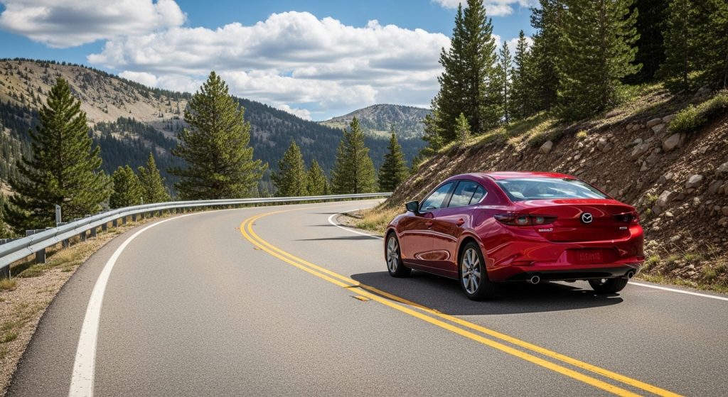 Mazda3 sedan feels engaging somewhat, owned for that drive fun without overdoing. Repeats handling lightly, softens into practicality doubts. Mild unresolved.