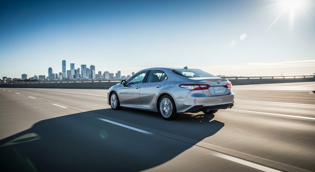 Camry feels solid and there, existing as a sedan that’s comfortable without fuss, owned for years maybe. Light repetition on roominess, though a sentence bends saying it’s average too. Softens without resolving.