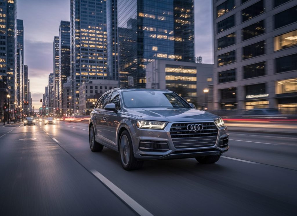 Audi Q7 quattro stable feeling tech clean blend perhaps. Owned it third row folds flat hauls. QX80 room beats slight sport kick. Might style coupe roof or box lag. Hangs uncertain there.