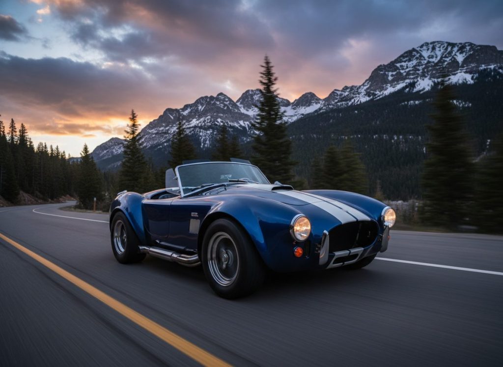 Shelby Cobra 427 roadster scares with power, side pipes scream. Ford V-8 shakes frame, brakes fade quick, lightweight flies. Values near million, accidents drop them. Smiles wide. Power like that, yeah. Kinda scary fast.