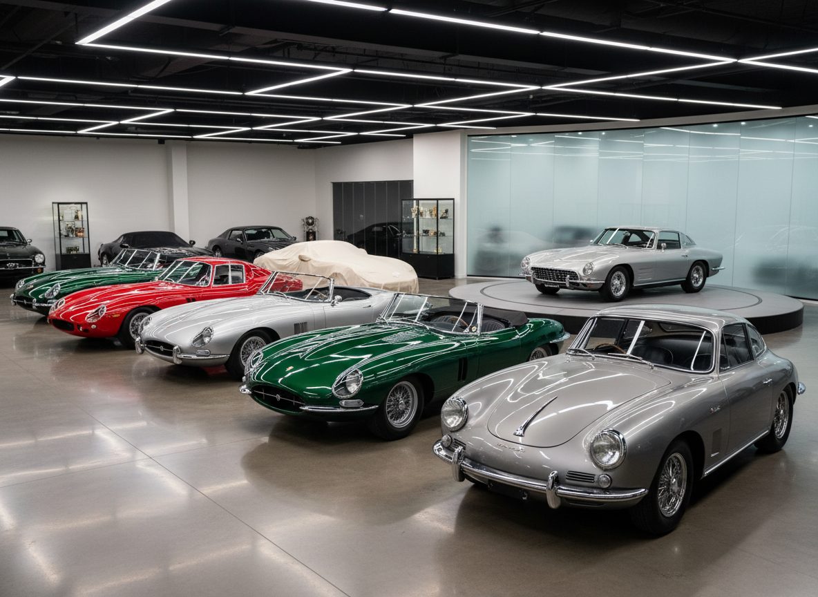 Jaguar E-Type series 1 curves timeless, 4.2 inline six smooth. Overdrive helps highways, rust eats sills bad. IRS suspension advanced then, still fun now. 100k plus for drivers, concours soar. Might hold value longer, it feels like. Prices stay up there somehow.