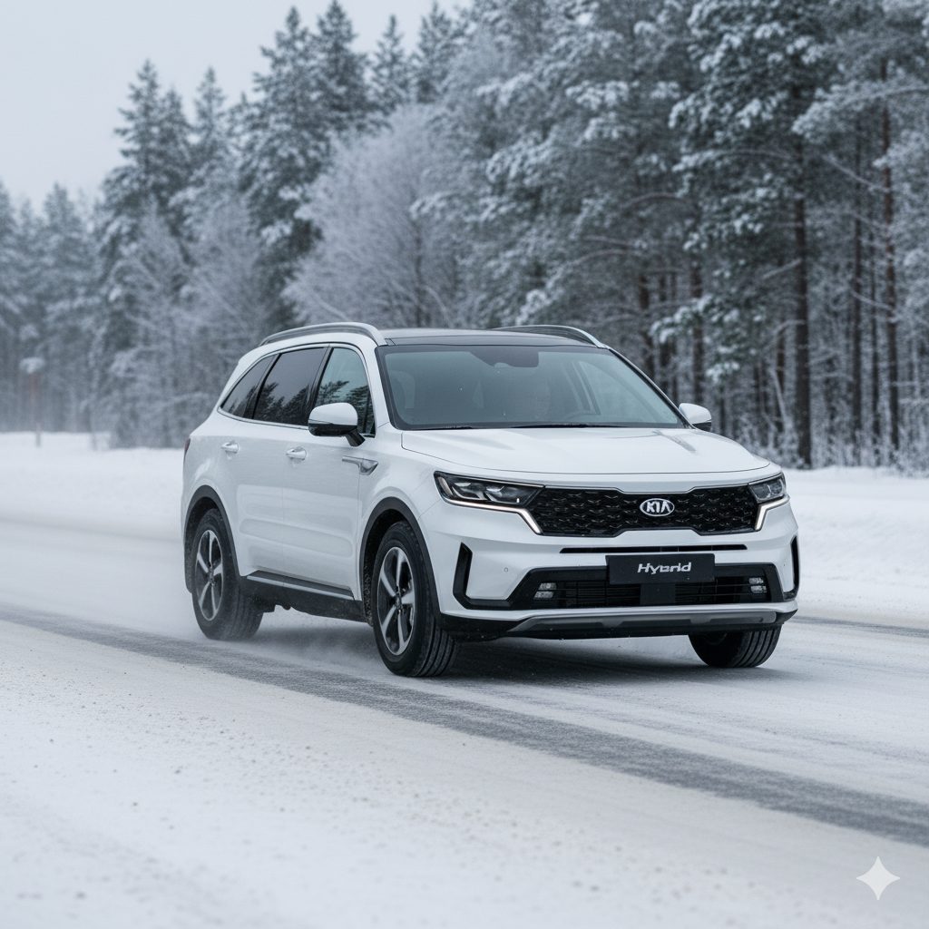 So, the Sorento Hybrid is like a bigger sibling on this list perfect if you’re carting more people or stuff on chilly trips. It blends a nice hybrid system with optional AWD, so winter traction’s solid and range anxiety is basically zero. $41,000 new is what you’re looking at, and for that, you get space, power, and a “yeah, let’s keep driving” kind of confidence.
