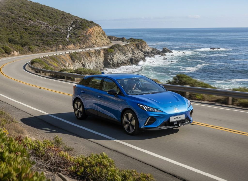 MG4 EV parks curbside, affordable on paper and owned by budget minds. It zips around town okay, but build quality nags at you faintly. Feels like a Tesla alternative, then repeats the doubt about longevity. Just there, uncertainly. Adds nothing extra really.