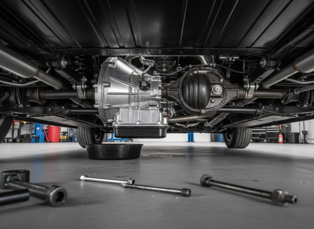 Tremec five speed replaced clunky three. Nine inch rear gears whined 373 bite. Posi chunks power even. Clutch hydraulic smooth shifts. Feels direct throttle snaps. Not sure highway drone long. Parked ready rip.