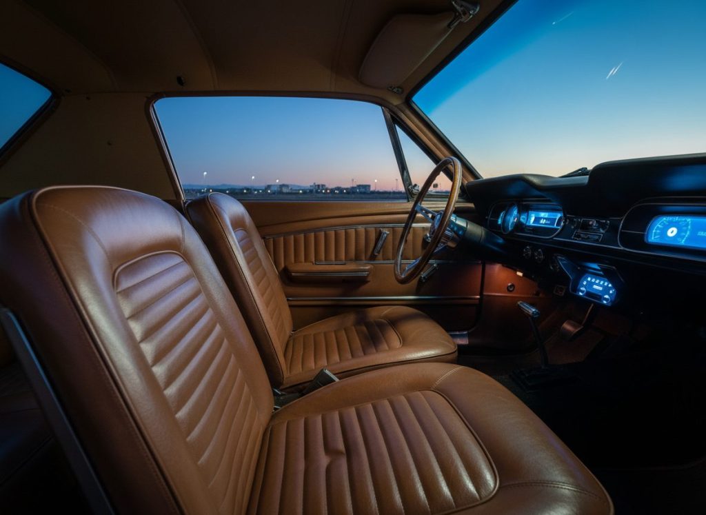 Bucket seats retrimmed saddle leather soft. Wood rim wheel three spoke classic. Dakota digital dash glows night. Carpet molded plush heel pads. Might sag seats time sits. Or holds shape forever. Exists time capsule vibe.