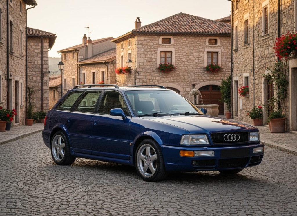 RS2 Porsche built five cyl wagon 311hp quick hauler. Periscopes vents wild 90s. Manual pops shifts brakes huge. Interior simple Recaros hold. Rare garages dream it feels like. Family fast no compromise maybe.