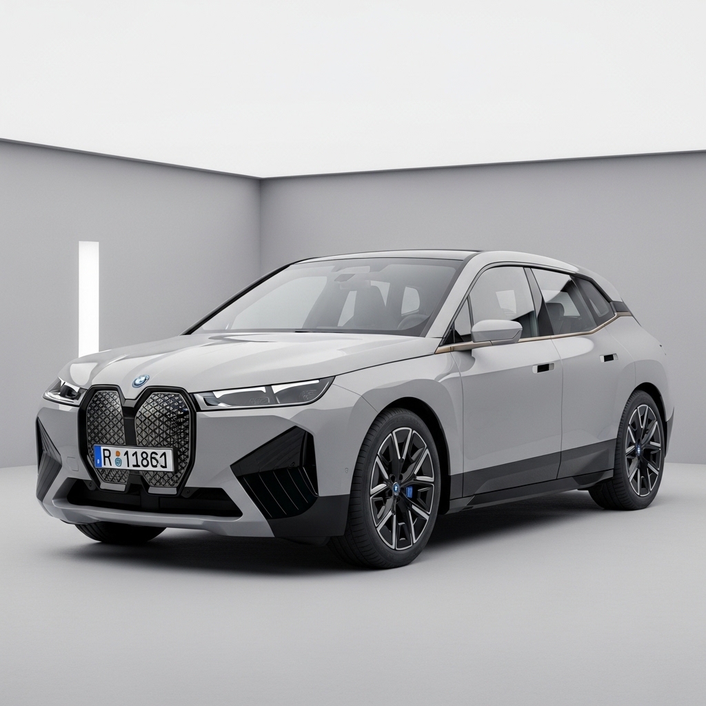 Futuristic BMW iX, refreshed logo people tell little. Owning bold presence, subtle tweak badge. Electric power exists strong, uncertainty standout more. Kidney grilles big anyway. Repeats quiet cabin. Charges station boring wait. Looks spaceship duller now.