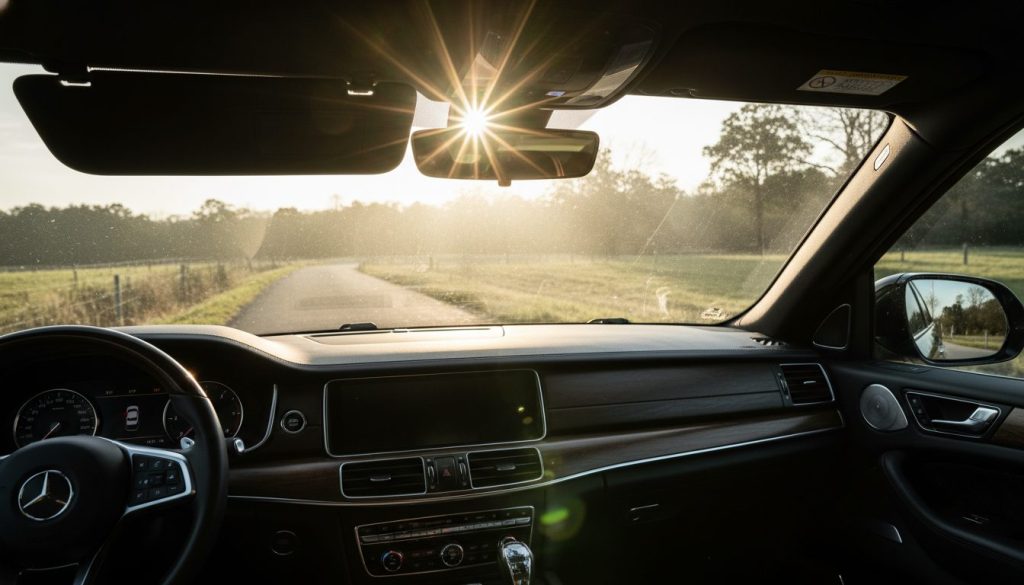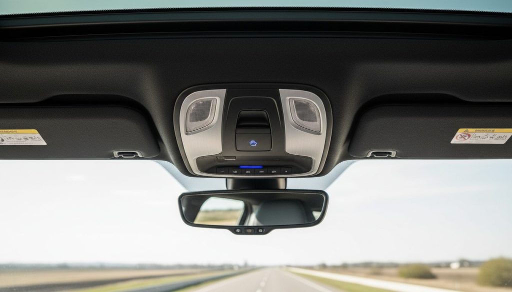 Sun visors flip down to block glare, but they don’t cover sides or leave gaps. Existing with them means adjusting constantly, that mild frustration on bright days. It sort of helps the front but repeats the side blind spots. Owning one feels basic yet insufficient somehow. Maybe extensions help, or not really.