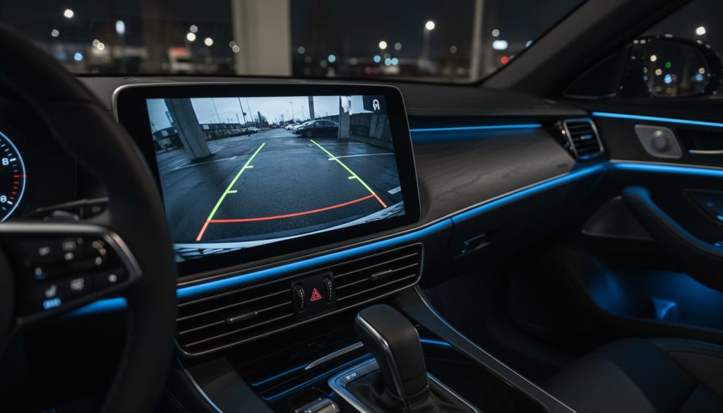 Rearview cameras show the back when reversing, clear in day but grainy at night. They exist for safety, experienced in tight spots where lines guide vaguely. Drivers own the view that contradicts low light, leaving uncertainty. It repeats blurry images lightly. Not sure on dark parking lots.