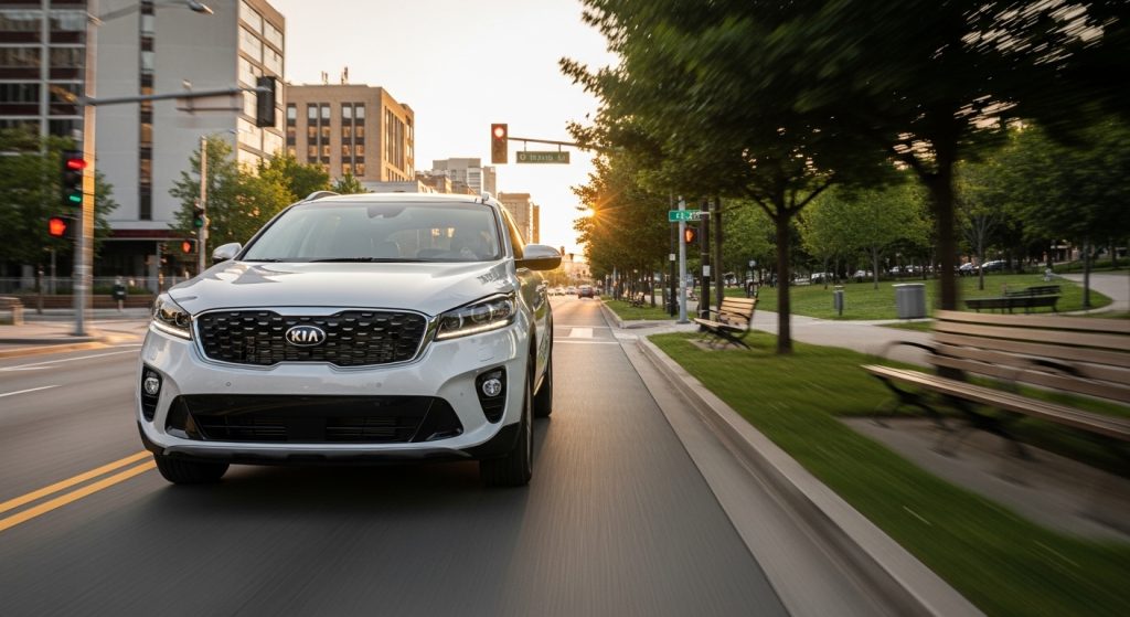 Kia Sorento packs rows dependably, under budget appeal. Driving handles loads, but warranty ends doubts grow. Reliable Korean build repeats feel. Mild twist on hills. Exists waiting for next drive.