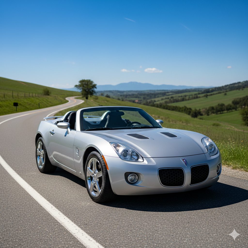 Last one, kind of a wildcard. The Pontiac Solstice GXP. Remember that tiny roadster from the mid-2000s? Turbocharged 2.0L, around 260 hp, and handled like a playful puppy. You could get one used for under $15k now, but good luck finding one that’s not been modded to hell. It’s not fast, but it’s got charm. The Firebird render sort of makes me wish Pontiac wasn’t gone, because with today’s tech, imagine what they could’ve built.