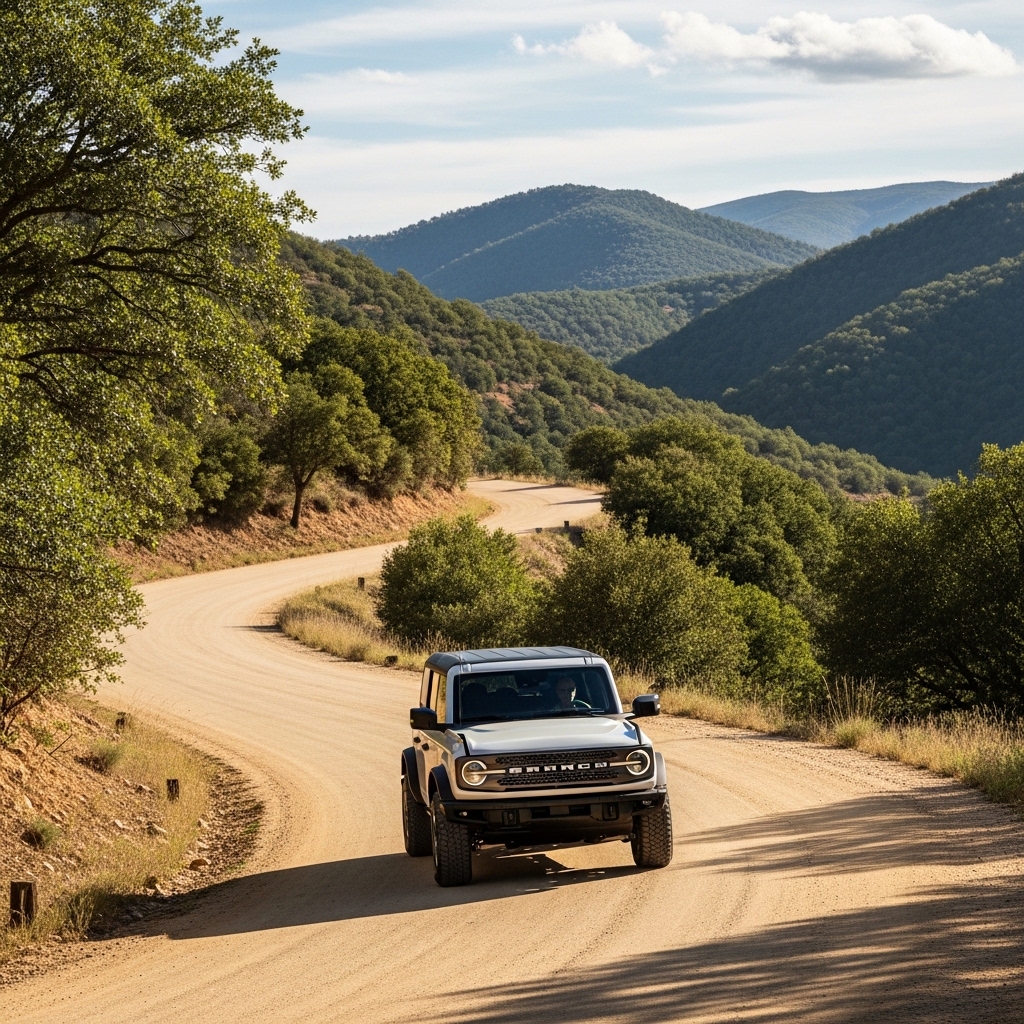 Bronco offroads ruggedly, feeling adventurous owned. Exists tough, but city softens it. Uncertainty in versatility, repeating trail thoughts. Geely tech might help, who knows. Value holds, sort of. Not clean.