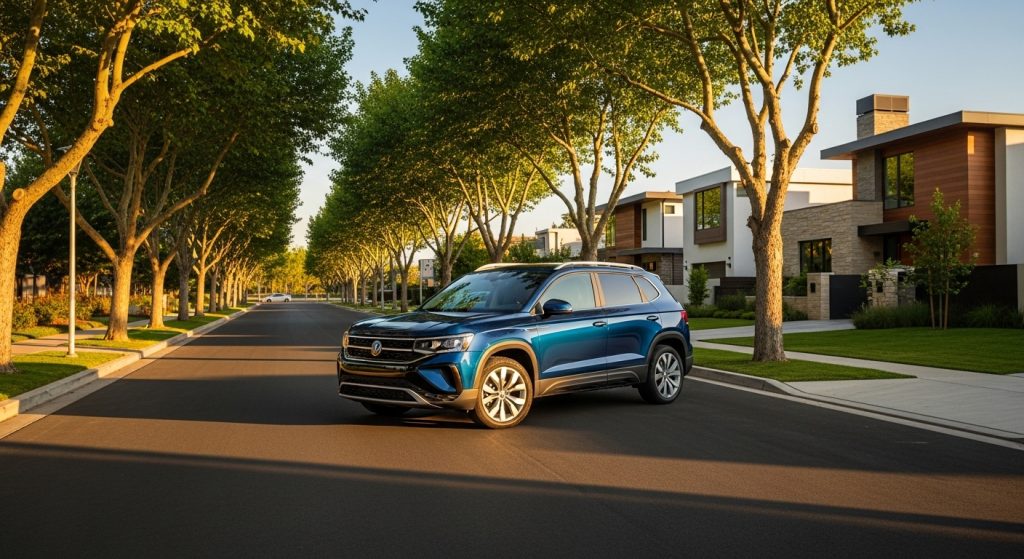 Volkswagen Taos cruises highways solid, turbo giving decent shove forward. Existing in neighborhoods, it blends upscale a little with clean lines. Owners mention the ride comfort, yet repairs worry sometimes. Feels European, repeating quality feel sorta. Space good for two rows.