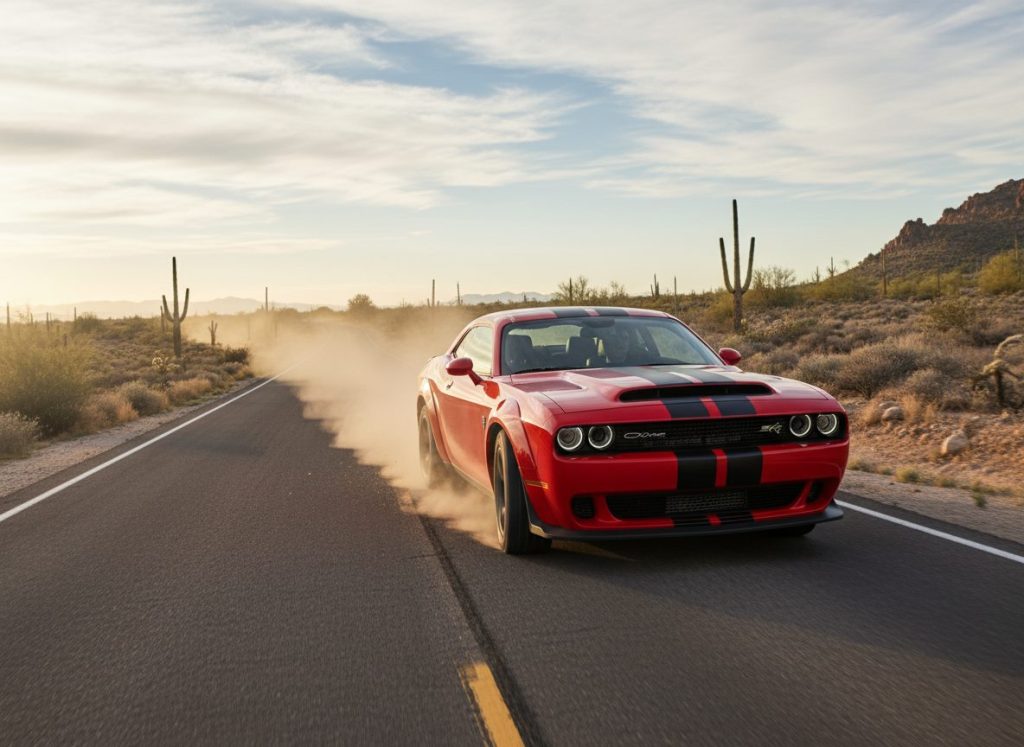 The Hellcat feels supercharged to extreme, teaser vibes similar. Return of that power, softens into drags. You wonder if it repeats too much tire smoke. Performance hint lingers, not fully resolved. Acceptable I guess.