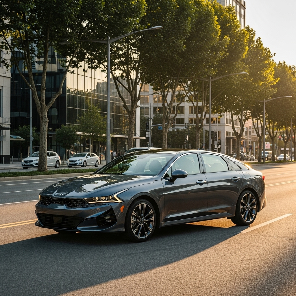 Kia K5 GT lingers larger in the lot, S+ style shift making it feel sport sedan ready but parked often. Owning means smooth pulls, the mode lightening the manual memory without full commitment. Idles patiently, sedan shape blending, uncertain about track days ahead. Shifts quick, repeats that engagement, though maybe not resolving the old gear feel completely. Styling catches light pointlessly at dusk, in a way.