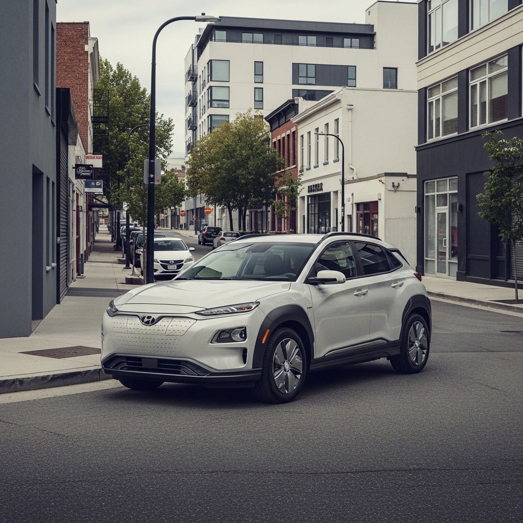 Hyundai Kona Electric small zippy, feels owned city fun basic. Leveling toward bigger brothers unsure. Contradiction tiny vs roomy want. Repeats budget EV. Just gets around.