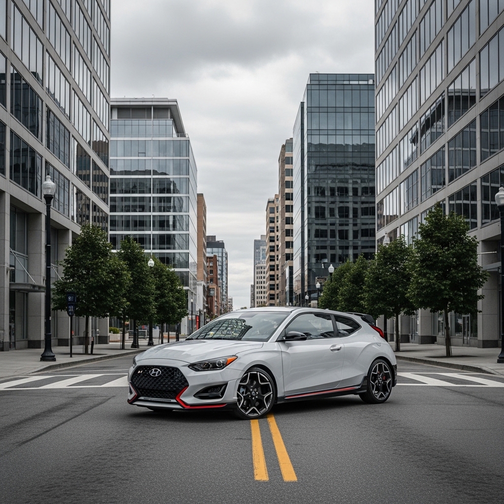 Hyundai Kona N in garage brings small SUV punch that surprises, owned playful but thirsty maybe. Feels quick off line then settles normal, mild pull back and forth. Lineup change could tone it or amp, not sure. Surprises repeat drives. Sits ready ish.