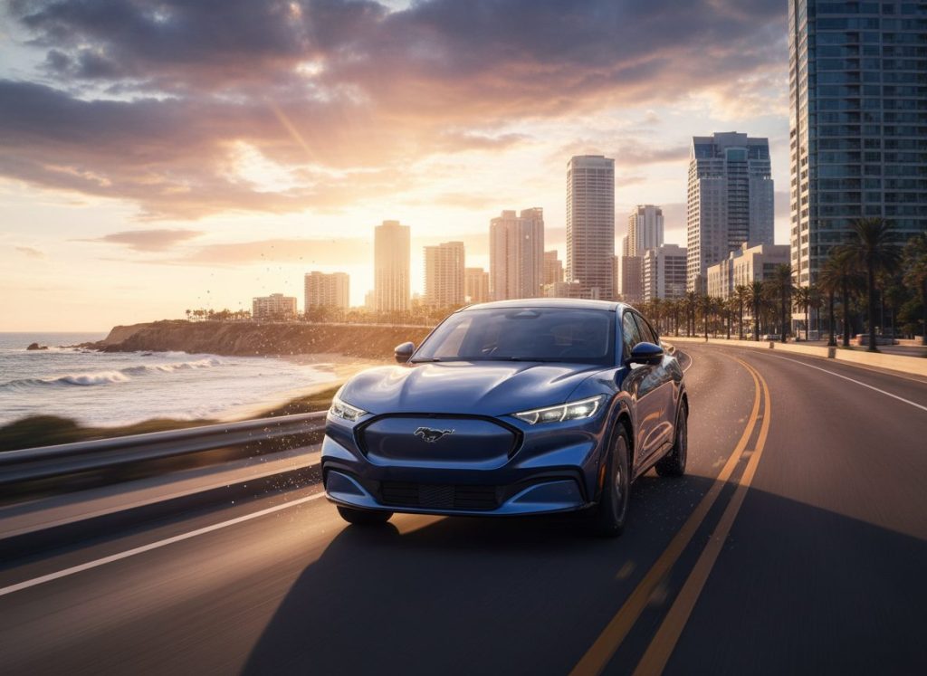 The Mach-E goes fully electric quicker, smart enough for commutes. More useful than sports cars maybe, repeats the drive mode softly. Mild contradiction in handling. Own it and it hangs around. Sort of unnecessary detail.