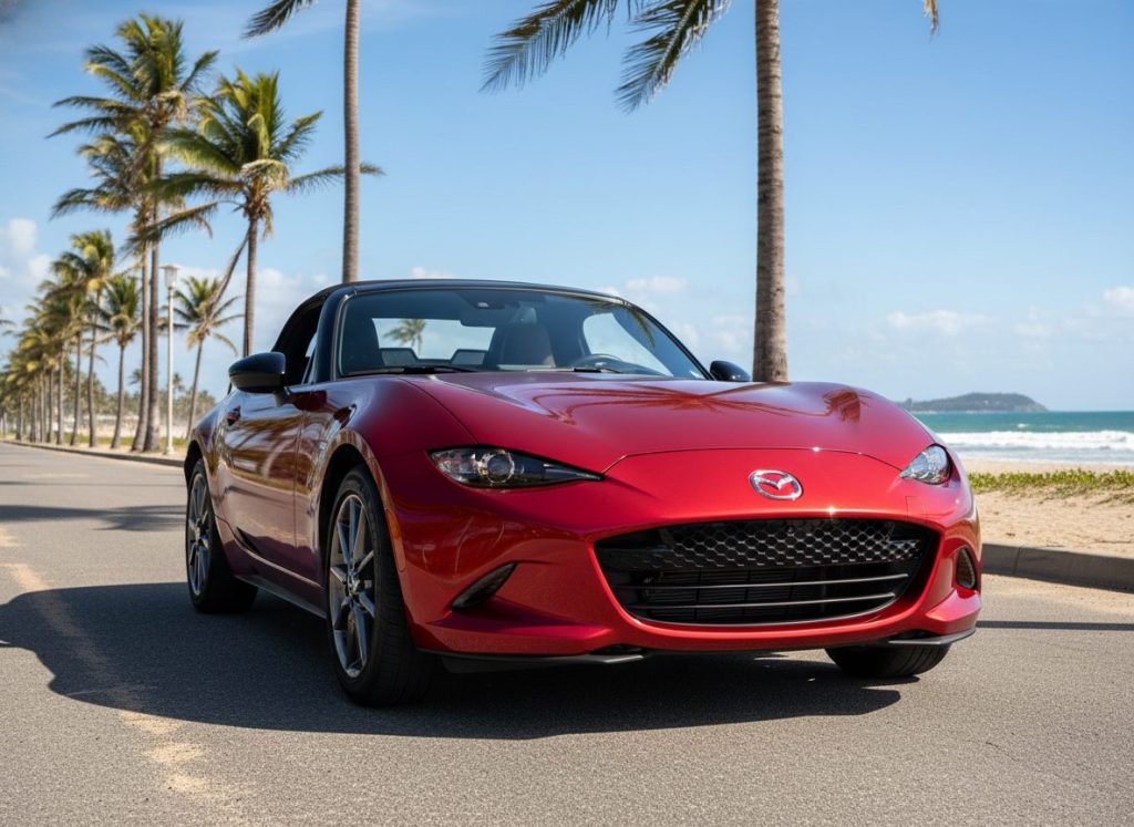 Miata flips top down wind rushes free. Owning summer joy but winter stores. New grille smiles wider. Light zippy but cargo none. Feels right maybe.