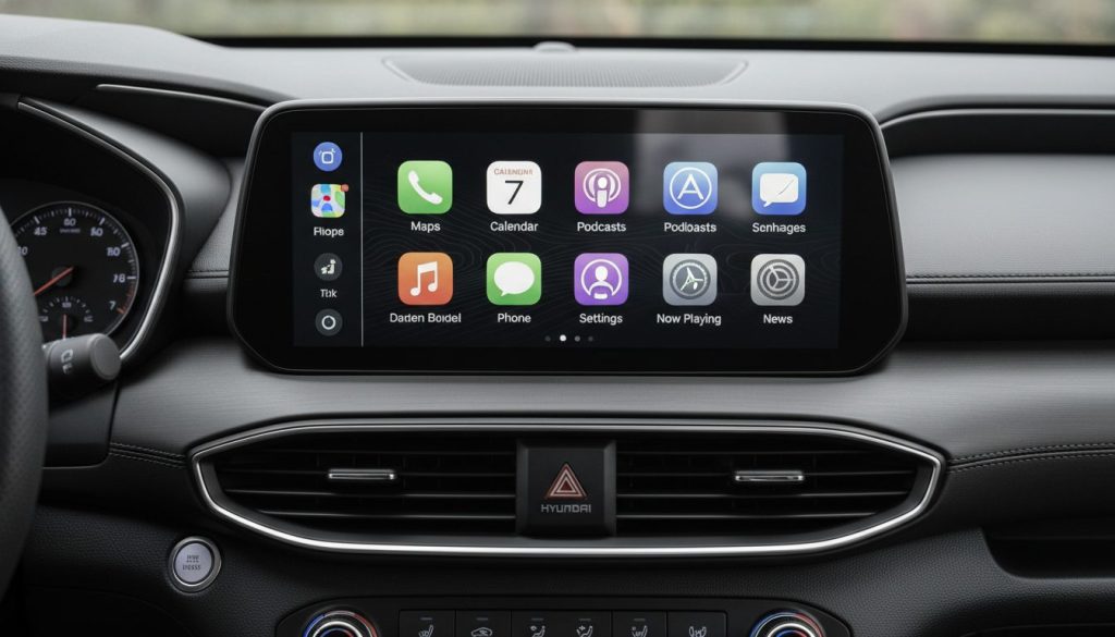 Apple CarPlay on 2026 Hyundai Santa Fe Hybrid mirrors your world to dash, seamless or finicky, feeling integrated maybe. It flows apps in, existing linked, repeat smart phone tie. Owned it navigates, but updates lag softening it. Experienced scrolling, unresolved quirks.