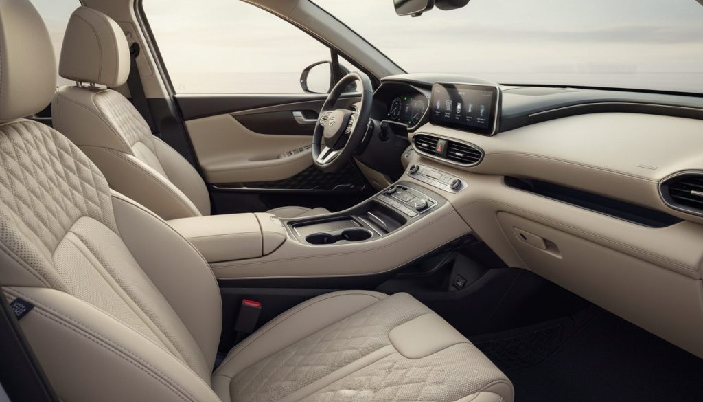 Spacious cabin inside 2026 Hyundai Santa Fe Hybrid wraps around passengers, roomy seats that comfort or crowd depending. It feels open existing there, repeating family-friendly vibes lightly. Owned daily it carries loads, though space might echo empty on solo drives. That experience lingers unsure, not fully settling.