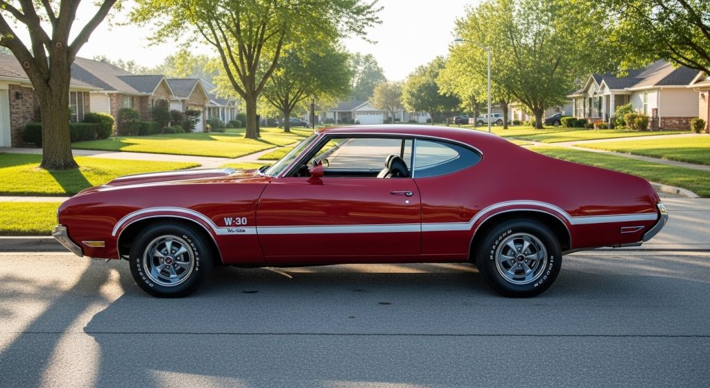 Oldsmobile 455 W-30 exists underrated power in 442s. Softens ownership with gold engine paint memory mild. Repeat W-30 stripes vague. Uncertainty sleeper status lingers. Contradict Olds rep lightly. Trails weaker parts hunt.