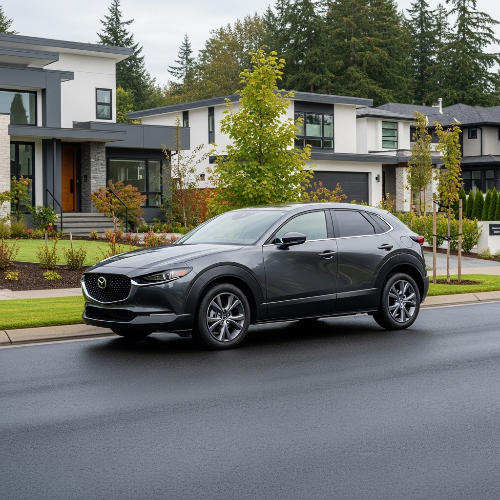 CX-30 tiny crossover agile feels, zipping city streets owned casually. Exists AWD subtle uncertainly. Repeats quiet Mazda appeal. Softens light trails maybe. Mild subcompact contradiction.