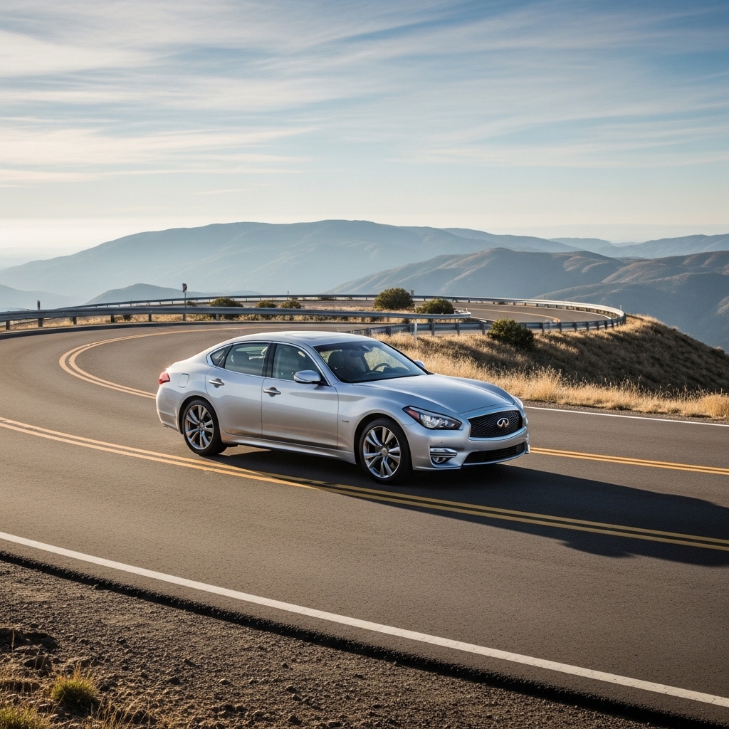 Q70 powerful sleeper, existing rear-drive fun. V8 growls optional, luxury solid softens sales. Driver focus repeats, future hazy. Potent choice, uncertain path.