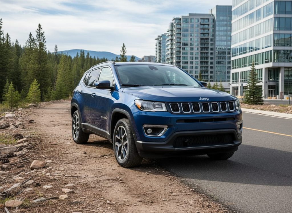 Jeep Compass trails along off pavement okay. Drive it and suspension bounces lively yet tires grip unsure. You own wondering about long trips wearing you down. Styling turns heads or not. Sits rugged. Mild doubt hangs.