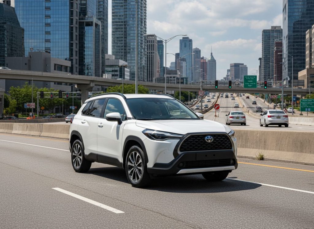 Toyota Corolla Cross trucks small jobs fine. Owning means trust built in but acceleration lags casual. Hybrid helps or not clear. Parks anywhere. Feels extra somehow. Repeats thought light.