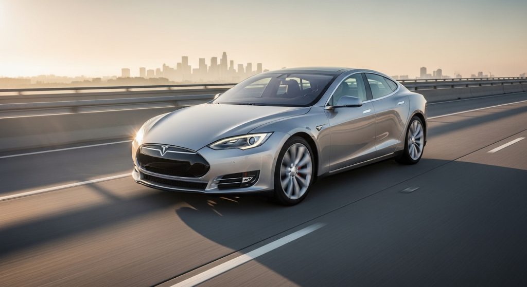 Model S cruises highways endless, feeling solid past 200k, owned long with software keeping it fresh somehow. Experience the silence persisting, seats worn but dash alive, repeating that future feel oddly. Uncertain on next battery swap though. Reflective miles.