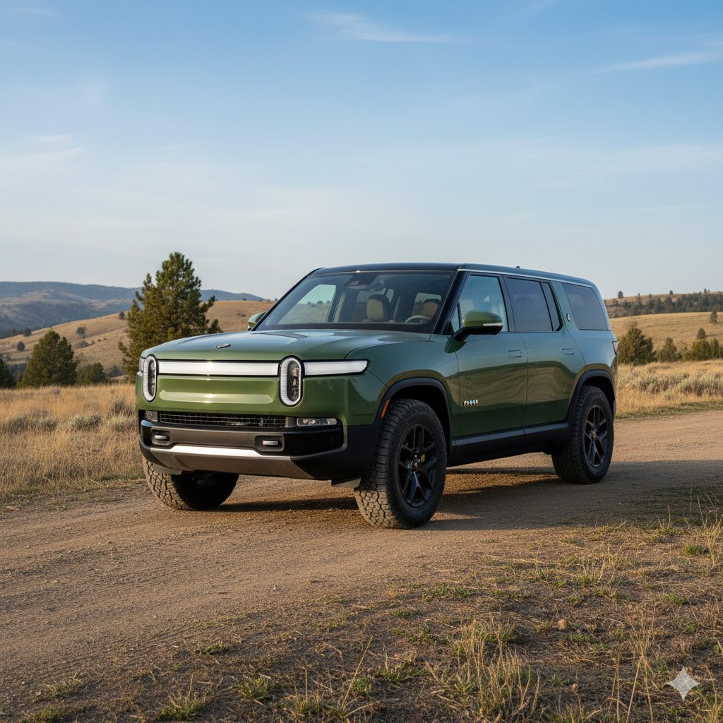 the Rivian’s like… camping for people who don’t want to smell like camp. I love it though. strong stance, colors look earthy in a sci-fi way. now that self-driving’s coming, it’s going to feel like a Pixar character moving on its own. maybe $90k, depending on how many latte holders you add. I once saw one near a beach, parked perfectly maybe it was already driving itself, who knows.